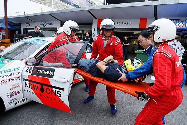 賽事工作人員迅速的排除狀況,也是澳門格蘭披治大賽車的焦點之一。