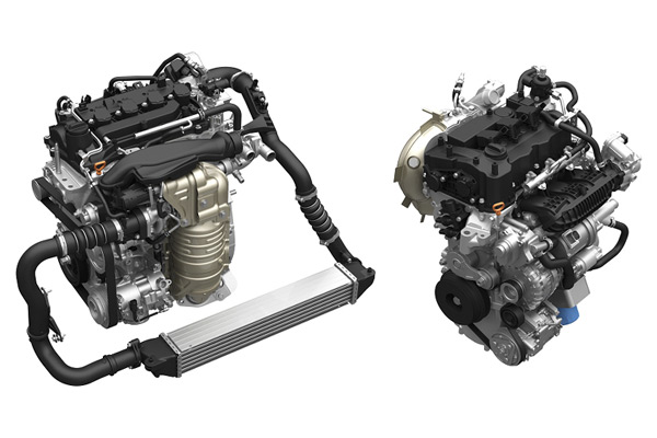 Honda於東京車展前發表的全新VTEC TURBO引擎族,未來可望成為Honda旗下小型車的主要動力。(左為1.5升直四、右為1.0升直三引擎)