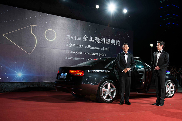 適逢別具意義的金馬50週年,得獎名單跟出席巨星皆備受關注,包括侯孝賢、李安、張曼玉、劉德華、林青霞等國際巨星皆擔任頒獎嘉賓。為了提供這些巨星們專屬的尊榮禮遇,台灣奧迪汽車特別精心安排全新Audi A8豪華旗艦房車擔任豪華禮賓車隊,以寬敞大器的車室空間及獨具人性化的科技配備迎接遠道而來的貴客們,特別是每個車座皆配有紓壓按摩的貼心功能與獨立控溫的人性設計,完美詮釋出最高規格的尊榮禮遇!除了Audi A8豪華禮賓車隊展演磅礡氣勢外,現場也同步展示Audi R8 Spyder頂級性能敞篷超跑,這款象徵著四環品牌再次成功地以超越自我的極致造車工藝,引領汽車科技進入另一個層次,完整匯集絕佳造型、先驅高科技、極致奢華,以及頂尖性能等出色設計元素於一體的終極超跑,一現身便吸引全場目光焦點,成為當天活動的另一亮點。