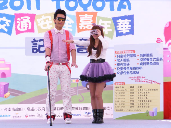 Toyota交通安全嘉年華是全台第一座交通安全體驗樂園,自日本獨家技術引進多元情境模擬道具,搭配一連串精彩的舞台表演活動及周邊設施,以親子同樂、寓教於樂的方式推廣交通安全觀念。現場並安排知名的蝴蝶姐姐與YOYO家族進行交通安全示範,透過手勢、道具、肢體等,讓交通安全概念變成輕鬆活潑的舞蹈與歌曲,使小朋友在遊樂中認識交通安全的意義。另外還有動感的Toyota啦啦隊帶領民眾一起跳交通安全活力舞,以簡單的舞蹈動作渲染你的熱情活力,邀請全民一同攜手,人人都能安全上路。
