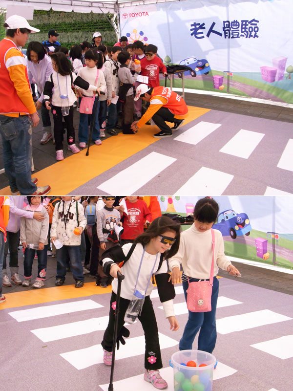 現場也推出多項台灣首見結合體驗與實作的交通安全情境式課程,包含兒童視覺體驗、酒駕體驗、老人體驗、夜光盒子、視覺死角體驗、兒童安全座椅教學、交通安全大富翁、交通安全故事屋等關卡,來推廣交通安全觀念。只要完成任一關卡即可獲得小禮物,完成任四關以上體驗闖關,還可獲得專屬的Toyota交通安全駕照並參加抽獎。