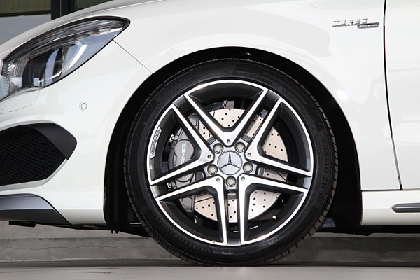 如同每輛高性能的AMG車款般,CLA 45 AMG 4MATIC同樣配備了跑車化的底盤及懸吊系統,可讓CLA 45 AMG 4MATIC有著更高的橫向加速度能耐,加上腳下四只AMG 輕量化合金輪圈有效地減輕簧下負擔的同時,235/40R18的高性能輪胎,更能緊緊牢固的抓住路面。至於AMG高性能制動系統,則給予了高性能動力的最對等防護,前軸高達350mm的煞車碟盤尺碼,匹配上330mm的後軸煞車碟,加上高性能的煞車卡鉗,達到隨煞隨停的理想境界。