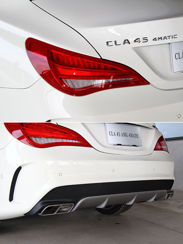 外觀上,雙刃造型的水箱罩與加大的前氣壩,成為了 CLA 45 AMG 4MATIC最不容錯認的車頭特色,且在此雙刃線條、下擾流中的翼板、車窗飾框與側裙等處,運用了極具戰鬥氛圍的消光鈦灰色設計。氙氣頭燈成為了標準配備,車側前葉子板上的「TURBO AMG」也是表彰性能實力的最佳銘牌。車尾同樣精彩,下分流器同樣運用消光鈦灰色設計,以此與車頭相呼應,左右四出式的 AMG 運動化排氣系統,尾飾管以鍍鉻處理,以低調的姿態彰顯質感。當然,如火焰般璀璨的 LED 尾燈,更是 CLA 45 AMG 4MATIC呼嘯而過時,深印腦海的最出色印記。