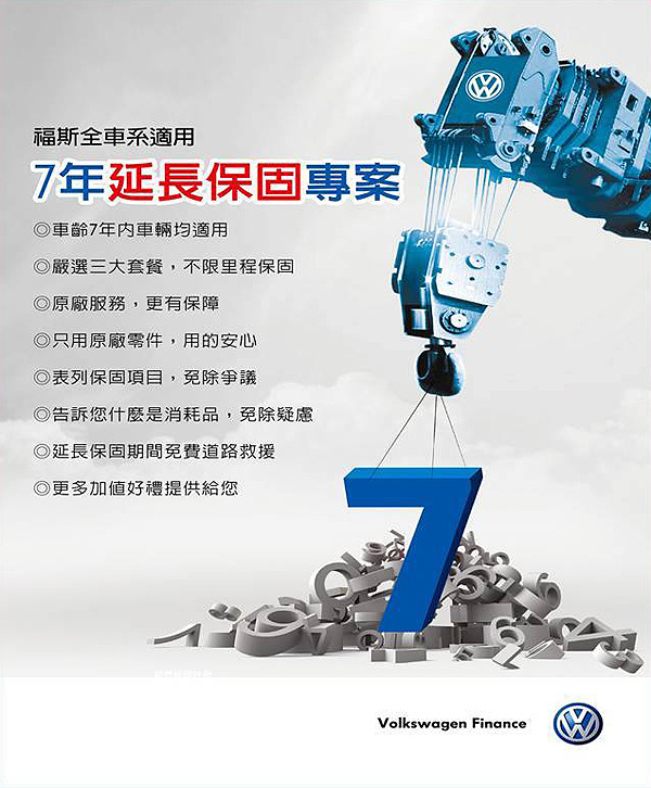 Volkswagen全車系7年延長保固方案內容:
