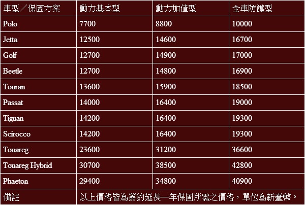 不過,由於本方案並非Volkswagen臺灣總代理全面延長臺灣販售Volkswagen車款保固的計劃,而是屬於售後加值服務的一環,車主若有延長保固的需求與詳細價格,還是建議就近與Volkswagen保養廠或是展售中心的業代洽詢。