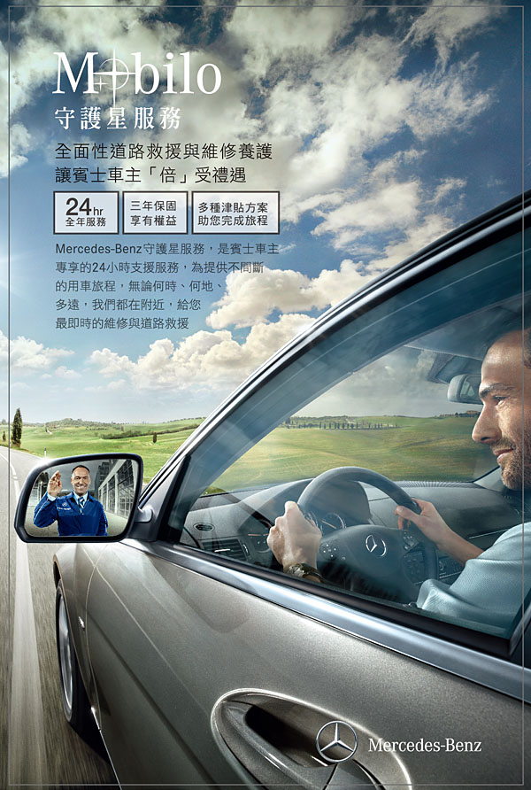 台灣賓士售後服務處趁年底推出第四波「Mobilo & smartmove - 守護星服務」,提供賓士、smart車主專屬24小時不間斷的後勤支援。