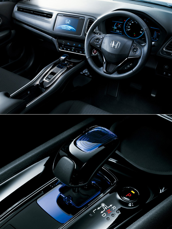 Honda Vezel在日本國內一併推出有傳統的汽油引擎車型、以及hybrid油電車型,而油電車型在排檔桿的設計也有不同。