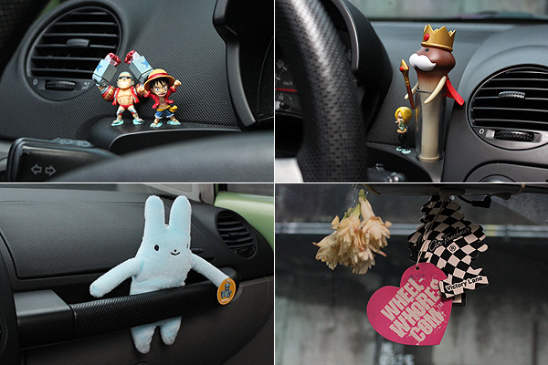 既然英文名字與《海賊王》中的薇薇公主相近又將車取名叫「跑得快」,車內當然少不了相關飾品。而副駕駛作上從初代Beetle演化下來的拉桿,則成為玩偶的安全座椅。