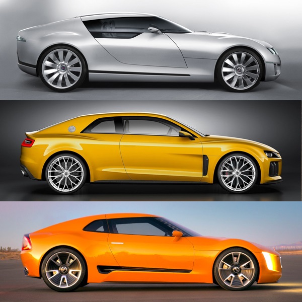 GT4 Stinger Concept(最下圖)的A柱與車頂頗有Saab Aero X Concept(最上圖)想像,C柱與葉子板則與Audi Sport quattro Concept形似。