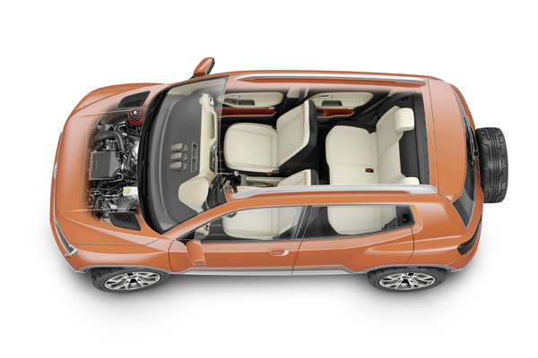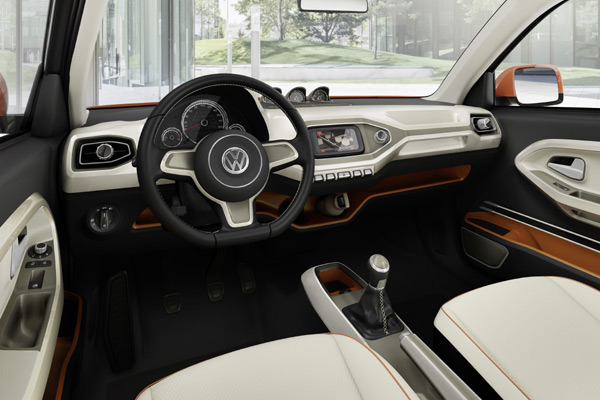 Taigun概念車寬敞、舒適的車室空間,都展現VW在一輛小型SUV裡結合高品質素材、與多功能實用性的設計,同時,還要能擁有親民的新車售價才行。Taigun在內裝的設計佈局展現了清新、與年輕化的感受,除了採用橙色、與米黃色的對比之外,部份飾板更採用陽極氧化處理的鋁合金材質,來呈現Taigun內裝的現代感。