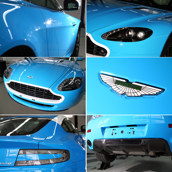 除了傳統英國賽車綠配色,另展示了藍/白配色地V8 Vantage N420: