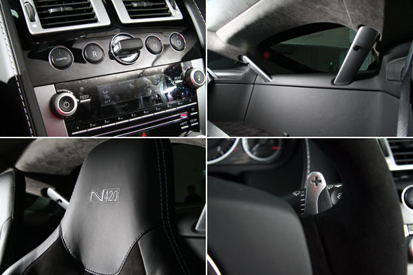 座艙中還具備了賽車化真皮或Alcantara麂皮方向盤、賽車座椅頭枕〝N420〞字樣、碳纖維門檻〝N420〞字樣等部品。