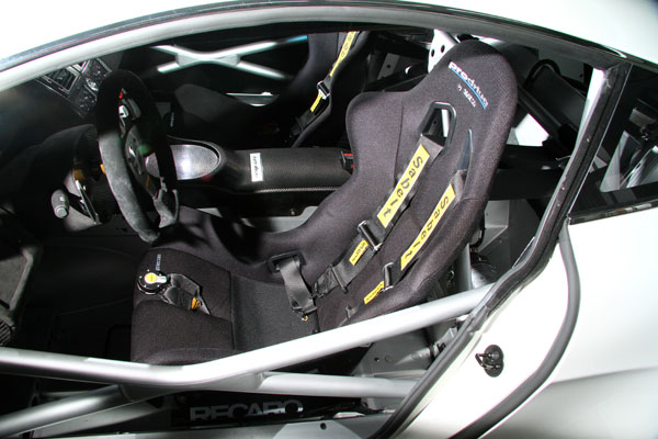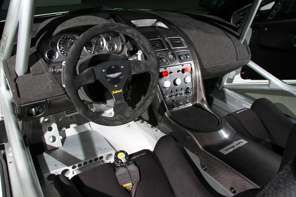 防滾籠、六點式賽車安全袋、碳纖維蓋板與競技化介面都顯現出Vantage GT4的賽車身分。