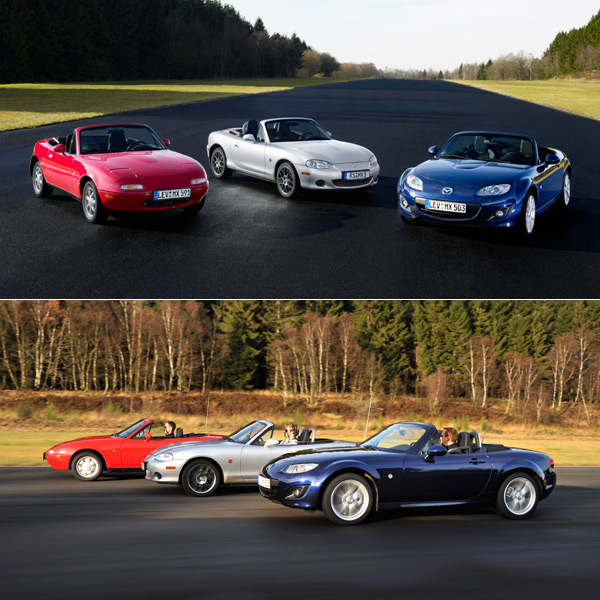 問世25年來,歷經NA、NB、NC(左至右)等三個世代的更迭,Mazda MX-5依然是汽車界裡「人馬一體」的代表。