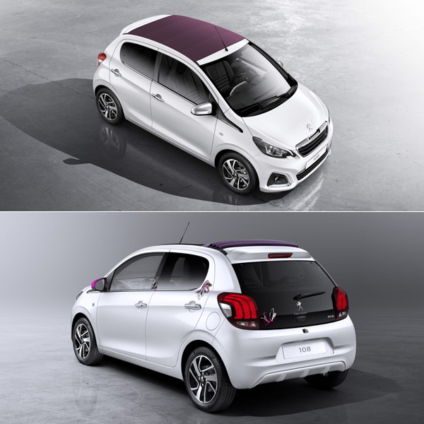 Peugeot 108將提供消費者七款設計主題、三款色彩搭配的選擇,外觀包括車身、與後視鏡外蓋等處的車貼,以及車內腳踏墊的花色等等,均可自由選配,另外在乘客座區域的色彩搭配,或是內裝中控飾板的花色、或裝飾等等,也都能按照車主的需求而定。