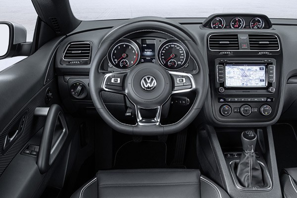 內裝部份最明顯的差異,在於小改款Scirocco於中控台上方追加了油溫表、計時表、與渦輪壓力表的設置,VW原廠表示,此設計也是向1974年原創的初代Scirocco致敬;此外,小改Scirocco在手煞車旁還設有一拉簾式的小型收納空間,而VW也為小改Scirocco追加了「Dynaudio Excite」音響系統、與「ParkAssist」駐車輔助系統等。