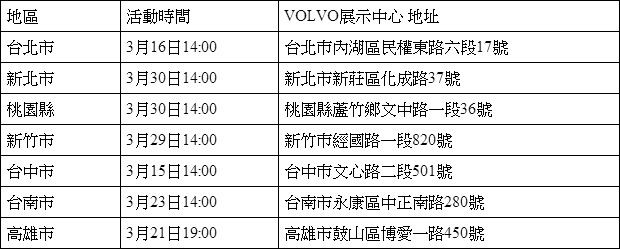 為了讓更多消費者能親身感受V40 Cross Country的獨特魅力,Volvo全台旗艦展示中心也將於3月中起盛大舉辦「Volvo V40 Cross Country/ 風之旅與爵士有約」發表會活動,現場除了有Volvo專業銷售顧問提供最完整詳細的產品介紹,也特別邀請到台灣首位太陽劇團舞者「張逸軍」,結合V40 Cross Country帶來精彩的感官藝術饗宴。