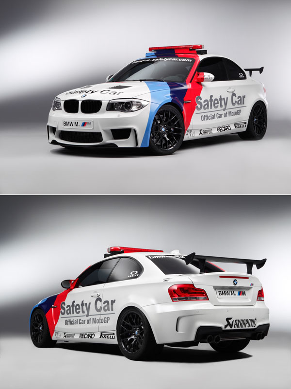 早從1999年開始,BMW M GmbH與Moto GP賽事便開啟了合作關係,合作至今,藉由Moto GP的舞台,同時成為M GmbH展示自身武力作品的平台;2011年,除了每每於賽程開始前,率先繞場一周的1-Series M Coupe此輛主要Safety Car以外,M GmbH還提供M3與X6 M兩款車作為預備Safety Car,同時,安全人員專用車為X5 M,賽道場務車為X6 ActiveHybrid、醫療用車為535i Touring;此外,另有兩輛Safety Bike,分別為BMW S 1000 RR與BMW HP2 Sport。