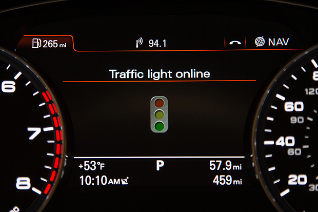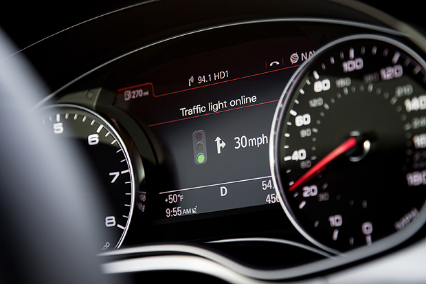 為了增進交通的順暢度,Audi研發一套能與現有MMI系統整合,並透過網路連結交通號誌管理系統的車載交通號誌預告系統。這套系統可以藉由與交通號誌管理系統的連結,再與車內的衛星導航系統整合,在得知車輛現在位置的同時,偵測下一個路口的交通號誌狀況,並顯示在儀表板內的DIS行車資訊顯示系統中,讓駕駛可以提前預知前方的號誌狀況,再依此決定該以何種方式駕駛。