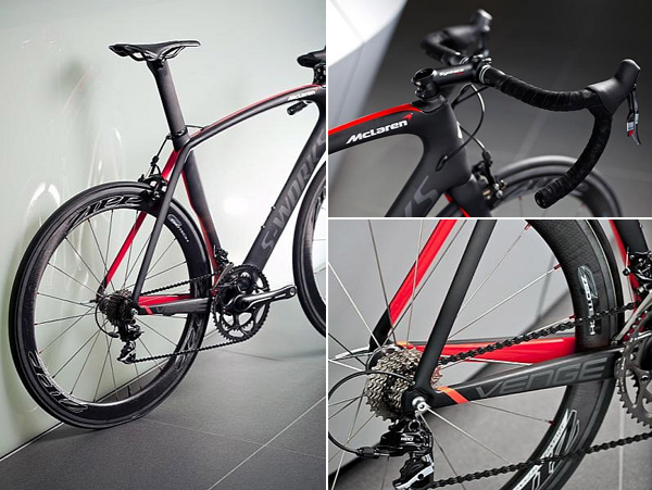 其實已有不少高級車廠推出了碳纖維自行車款,而McLaren與終極版公路車,其實更不難在兩者之間取得連結,McLaren在F1多年,本身就是碳纖維科技的佼佼者,像是已經上市,以單片式碳纖維車體結構為主打的MP4-12C跑車一般,全新的Venge公路車便是在McLaren與SPC以專案〝The S-Specialized + McLaren Venge〞進行合作之下完成。