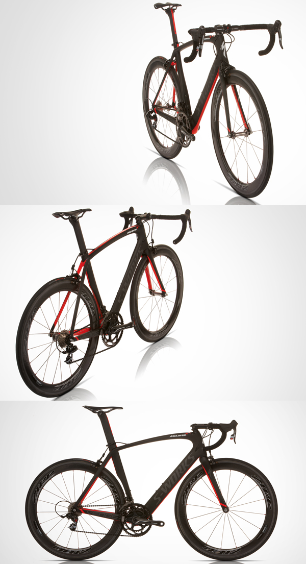 公路車對輕量的要求,其實就跟跑車的公式一樣,以碳纖維材質骨架與空力的計算,建構出能夠輕御破風的終極型態;這領域的極致在2009年有一家來自英國Norfolk的F1賽車零件供應商BERU打造出了Factor 001量產車;而相同來自F1賽車的技術背景,大廠McLaren在2011年也投入了這樣的開發,自2006年起與來自北美的Specialized自行車零件廠(Specialized Bicycle Components,以下簡稱SPC)合作,終於在今年推出了公路車界的MP4-12C,全新Venge公路車即將在本週末於義大利Milan-San Remo公路賽進行全球首演。