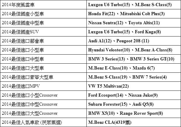 堪稱台灣車壇奧斯卡的【2014車訊風雲獎】評選結果於3月28日正式出爐!