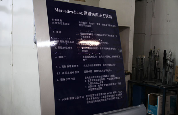 此站則說明使用的塗料選擇,採用全世界最大汽車塗料品牌Axalta艾仕得塗料系統,提供全球統一的塗料品質。