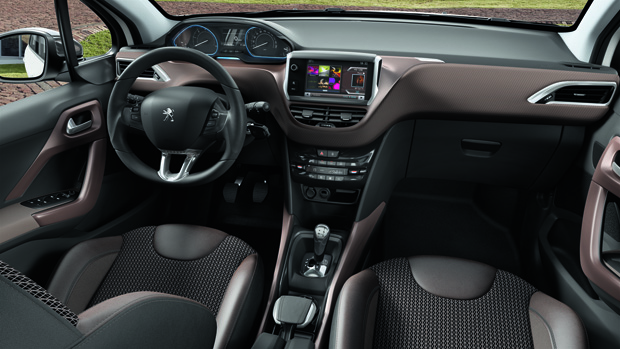 2008中控台承襲SR1概念車設計,以Peugeot所堅持之駕馭理念,透過懸浮式抬頭顯示儀錶板改變駕駛視覺角度,搭配專屬多功能小盤徑方向盤,整合音響、通訊、行車資訊,並與中控台的7吋全彩螢幕通資系統同步,就手的操控感受與精確路感回饋;另外,獅掌風格手煞車拉桿,絕佳包覆之高度握感,滿足熱情的駕馭本能,更提供遊刃有餘的駕駛感受。