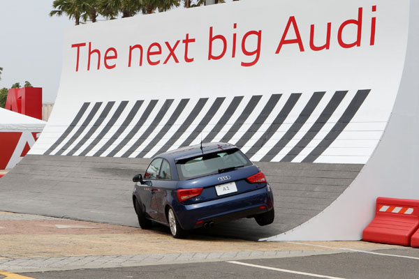 透過行進後停在傾斜坡道上的A1,民眾可體驗A1懸吊設計及底盤剛性。