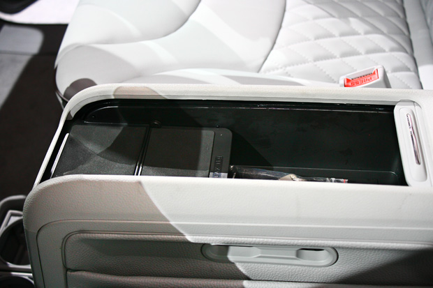 除此之外,M7 Turbo還全新導入All in One多功能影音整合中央扶手,不僅整合了CD/DVD影音設備、車用面紙盒及精巧儲物空間,還可外接HDMI影像投影(可支援多品牌行動裝置),將手機影像同步顯示於10.2吋安全科技顯像螢幕及後座10.2吋吸頂式螢幕上,更可搭配AV端子、USB、AUX-IN等影音設備,完整涵蓋所有車用影音娛樂功能;另於中央扶手後方配備12V與110V的充電座,讓全家人於旅途享受不斷電的3C生活。
