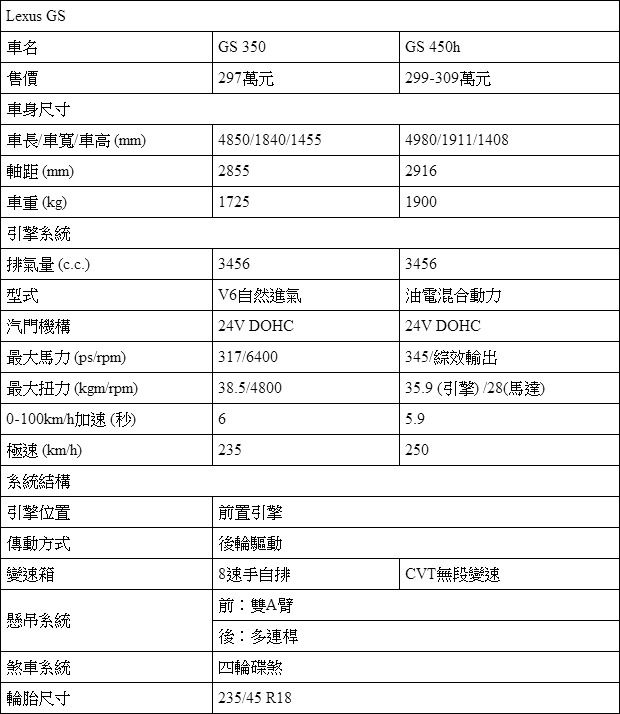 比起幾款德系的4門Coupe或是Jaguar XF,位處日系天秤端點的Lexus GS與Ghibli相比,老實說並未那麼接近。不過,Lexus旗下的GS車系在過往也多所強調其動感特性與風格,並且為其開發F Sport套件以增添其運動色彩,也是少數與Ghibli調性較為接近的日系豪華中型房車。以動力輸出而論,傳統汽油引擎的GS 350與搭載Hybrid動力的GS 450h要屬與Ghibli較為接近的兩款,若要進一步強調個性化風格,Lexus在GS 450h動力上還提供F Sport車型可供消費者選擇。而GS車系最大的優勢,除了日系車的可靠度外,GS 350僅需297萬元,即使是GS 450h F Sport版也僅需309萬元的售價,更是GS車系的優勢所在。