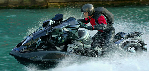 其中阿米爾汗騎的BMW K 1300 R,在警匪街頭追逐戰中不但上演「縮把手穿越縫隙」場景;當從橋上一躍而下時,更逐步變形為「水上重機」,彷彿變形金剛再現,令人熱血沸騰!