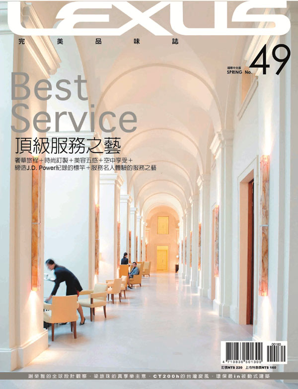 本期「Lexus完美品味誌」特別規劃封面故事「頂級服務之藝」。在當代生活品味的趨勢中,體貼的功能或華美的設計已經不再代表一切,更重要的是在於享受「完美服務」的難忘體驗。當所有品牌、產品皆被現代行銷包裝得琳瑯滿目、難辨虛實之際,惟有完美服務才能永垂不朽,Lexus在全球的成功也正是如此。因此本期特別報導消費者調查中最受顧客衷愛的品牌服務,以及這些品牌獨特「頂級服務之藝」是如何累積與傳遞。除此之外,「Lexus完美品味誌」之「設計」與「奢華品味」專欄,更邀請最能代表這兩個領域的名流達人謝榮雅與梁旅珠執筆。今年初以來全世界最重要的奢華腕錶、設計家具與消費性電子展覽,也在報導之列。內容豐富多元。