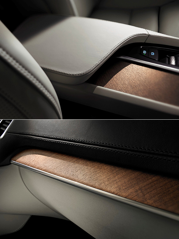 整體的內裝鋪陳,同樣維持Volvo一貫減約的北歐設計,除了簡潔的中控台外,新款的3輻式方向盤以及排檔頭樣式也改為圓潤的曲線。搭配皮革與原木交織的設計、排檔頭上的水晶玻璃,以及引擎啟動按鍵、音量旋鈕與行車模式選擇鈕上的鑽石切割紋路,即使與現行Volvo家族產品的氛圍大相逕庭,不變的是北歐的設計質感。