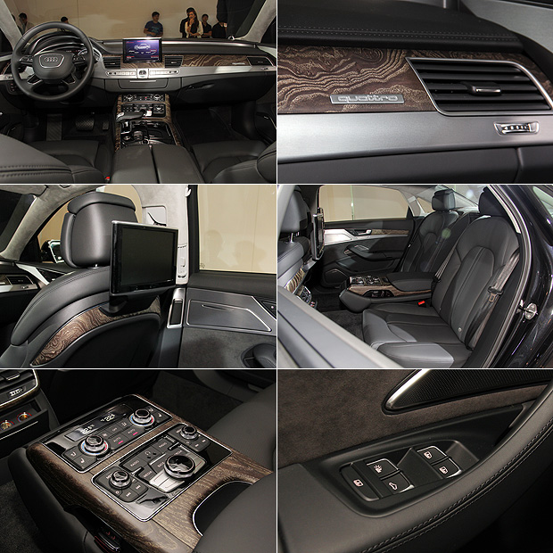 內裝部分,臺灣市場的A8 L W12並未選用四獨立座椅的配至,儘管如此,仍然配置有前22向、後12向電動調整座椅,並且整合通風、加熱與按摩功能,同時,右後座還可直接控制附駕駛座椅背角度,以迎合後座買家的舒適需求。身為Audi家族的頂級旗艦,A8 L W12的安全配備不僅與S8同級,還另外搭配360度環景顯影系統、擬真停車輔助圖示,以及整合行人與大型物體標示功能的夜視行車輔助系統,已建構完善的安全保壘。