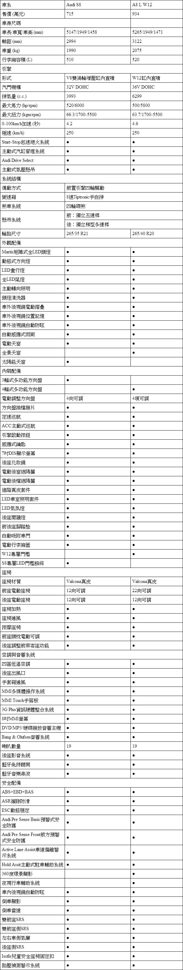 繼A8與A8 L於日前進行小改款更新後,Audi Taiwan於6月9日正式引進動力旗艦S8,與A8 L W12頂級旗艦的小改款版本。