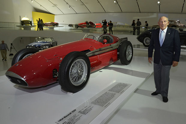 Stirling Moss 也出席了此次開幕儀式,他曾駕駛著這輛別具一格的跑車捧得無數獎盃和榮耀,例如1956年的義大利和摩納哥大獎賽。當然,不得不提的還有Moss 曾駕駛的另一款車型Tipo 60 "Birdcage"。這款著名的雙座運動跑車配備前置引擎,這一具有獨創性的義大利設計能夠與跑車的旋轉式底盤完美搭配,在生產過程中將數十個纖細的金屬管焊接在一起,以確保底盤堅硬而不失輕盈。許多私人賽車團隊都曾在比賽中使用過這款跑車,它從1959年起便為Maserati 贏得了無數勝利,讓公司獲得了名聲和威望。