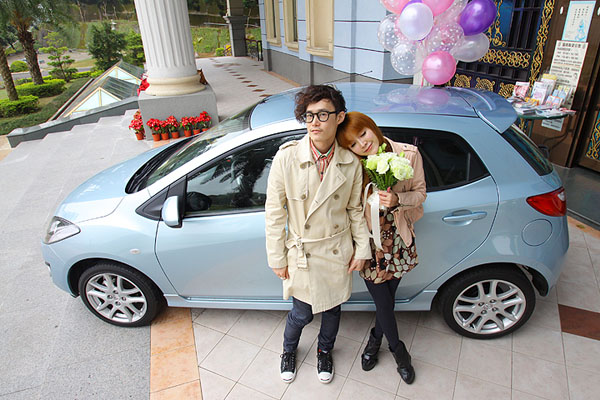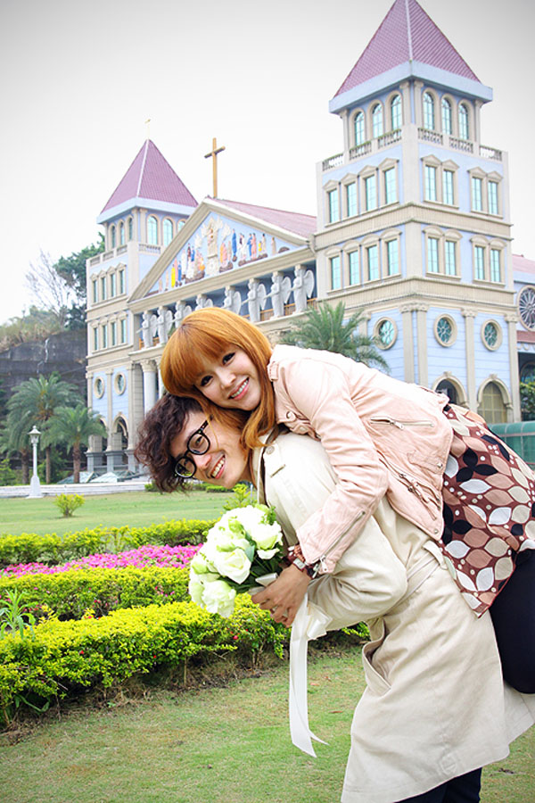 崔咪與New Mazda2台中一日遊,前往婚紗勝地圓滿教堂幸福合照。