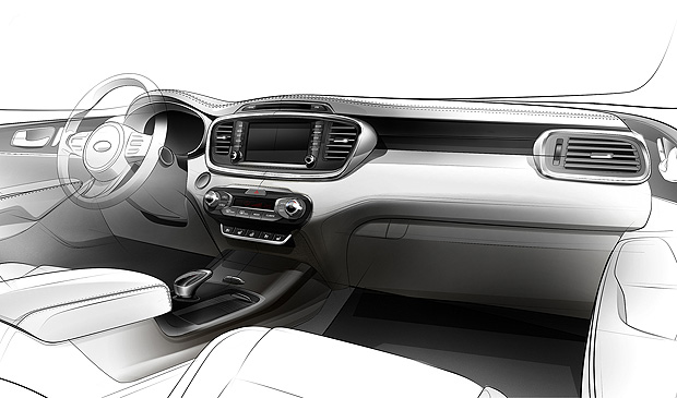 以位在德國法蘭克福的設計團隊主導的內裝設計,透過來自於瑞士鐘錶的靈感,以平滑的線條搭配大量使用的柔軟材料、皮革與縫線等,期望創造出更具有豪華值感的車室氛圍。在車內的設計上,導入Kia新一代HMI (human-machine interface) 人機操作介面思維的Sorento將以中央的大型液晶顯示螢幕為主軸,搭配按鈕簡化的中控台,提供更為順手的操作,並且帶來更好的娛樂效果。