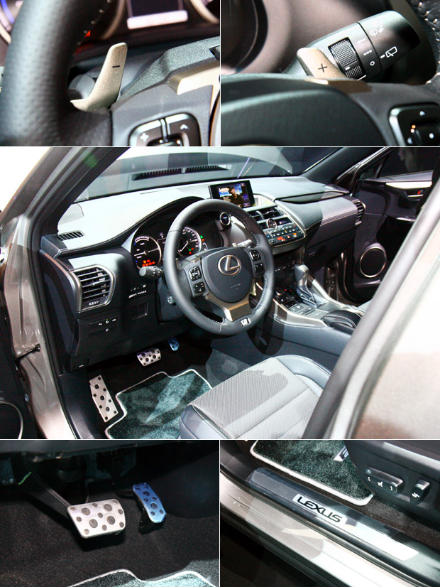 NX F Sport車型擁有專屬附方向盤換檔撥片的運動化方向盤,以及鋁合金材質的踏板組、及門檻踏板。