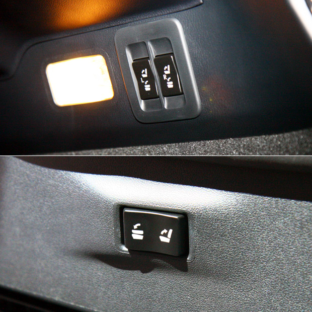 NX 300h頂級版以上車型標配的60 : 40後座椅背電動調整機制,可藉由車尾廂右側、或後座兩側的按鍵進行調整。
