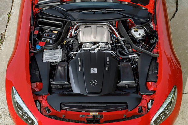 原廠代號M178的此具4.0升V8雙渦輪增壓汽油引擎,絕對是Mercedes-AMG GT讓人關注的重要焦點。延續使用於45 AMG家族那具2.0升渦輪增壓汽油引擎的科技精華,讓此具V8引擎有著出色的高效率,也能同步符合歐盟六期排放法規。相當特別的,此具V8引擎將渦輪增壓裝置安置於V型引擎內側,而非傳統外側,加上乾式油底殼設計,讓其不僅成為了全球第一具有此特殊設計的V8渦輪增壓引擎,也具有重心集中、導流順暢等優點。