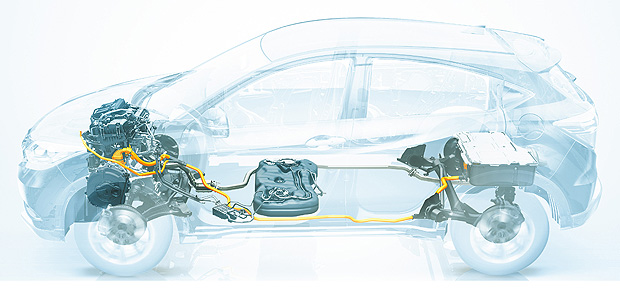 中央式的油箱設計搭配平整化的車底,不但有將重心集中、降低的優勢,同時也能增進油耗表現與車室空間。