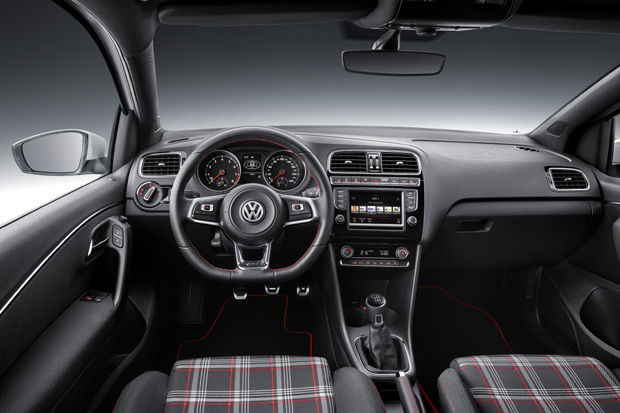 內裝部份,小改款Polo GTI換裝全新的平底化方向盤,另外運動化座椅也採用GTI傳統的格紋圖樣裝飾,其他變更包括有高亮度烤漆的黑色內裝飾板,以及對比呈現的紅色車縫線等等。