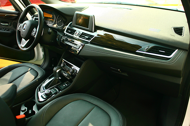 2 Series Active Tourer內裝以Sensatec皮質搭配霧面銀色飾板(全新225i Active Tourer為黑色高光澤飾板),同時全車系標準配備雙前座電動跑車座椅含駕駛座記憶裝置、跑車式多功能真皮方向盤、前座可調式中央扶手、iDrive中文化控制系統、BMW Professional音響主機含MP3播放功能、分離式恆溫空調含後座出風口、藍芽免持行動電話系統與USB音源插槽等,提供駕乘者愉悅的旅程感受。