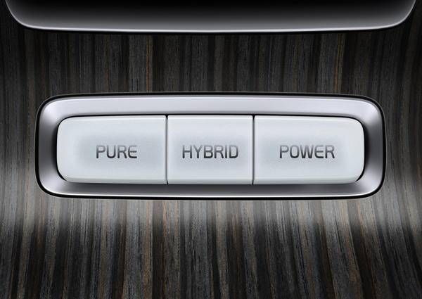 V60 Plug-In Hybrid車內動力切換按鍵。