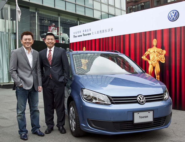 太古標達汽車總裁黃齊力與發表會來賓庹宗康在全新Touran旁合影。