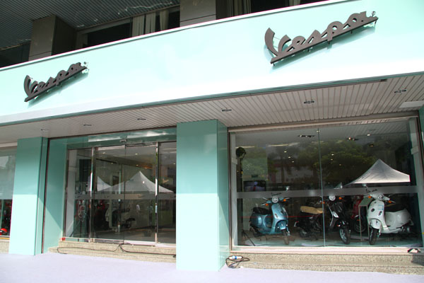 位於西門町的Vespa旗艦店佔地為255坪,為Vespa亞洲最大的展示間,地址為台北市中正區中華路一段41號1樓。