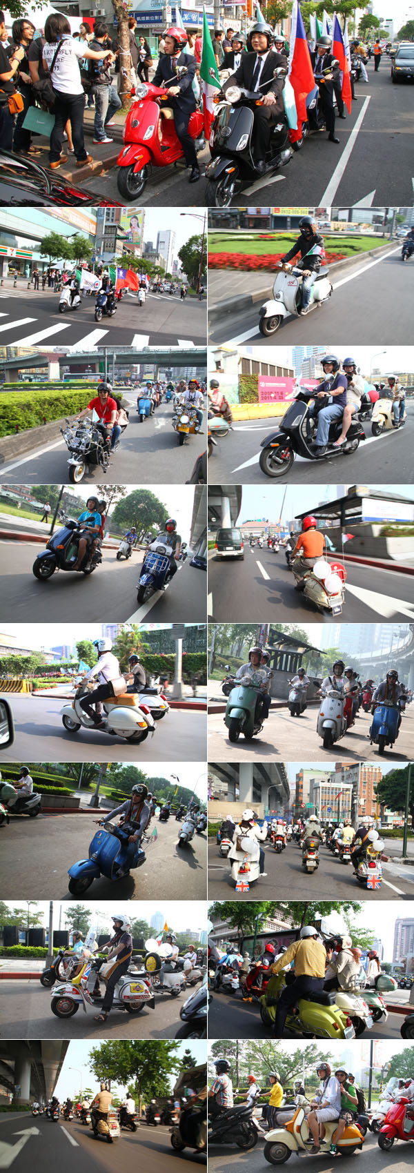 數百位Vespa車迷在品牌發表會當天同時舉行的盛大遊行,出發前佔據了整個中華路一段的街頭,許多車迷專程將自己多年來珍藏的Vespa自其它縣市運到台北,就是為了一定要來參加這場等了三十年的盛會,活動宣佈後一週內即突破700人次報名,可以說是盛況空前,當晚還為車迷們安排了一場Vespa精品秀。