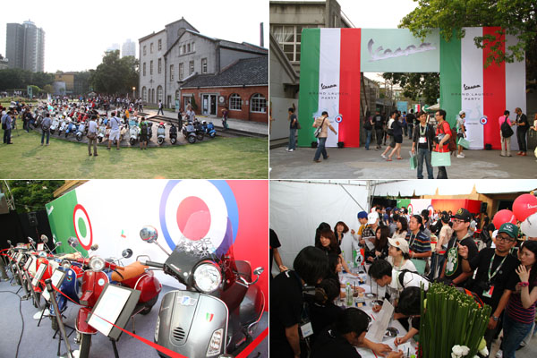 由太古與Piaggio亞太總部高層一同騎乘Vespa車款出發,從西門町一路繞行台北部分市區後抵達華山創意文化園區。